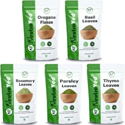 - Thyme-Leaves 40g, Basil-Leaves 35g, Parsley-Leaves 30g, Oregano 35g and Rosemary Leaves 50g.